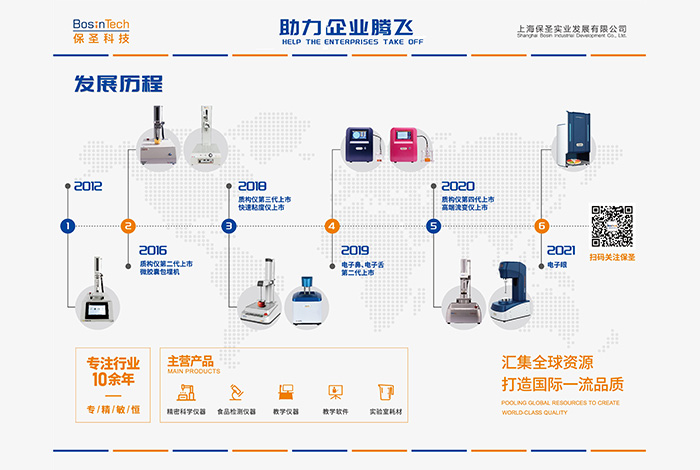 主要產品有:流變儀、質構儀(物性測試儀)、電子鼻、電子舌、電子眼,快速粘度儀,GC-O, 嗅聞儀,整體感官實驗室,感官分析軟件等。保圣產品堅持高品質,因此贏得了良好的口碑、加上優(yōu)質的服務使得公司產品暢銷國內各大高校、研究所、食品、藥品企業(yè)。 并獲得了高度肯定。